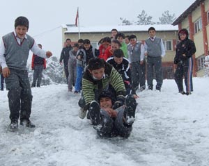 Sabah saatlerinde etkisini iyice artıran kar yağışı en çok çocukları sevindirdi. Kar yağışıyla birlikte okullarında ders gören öğrenciler, teneffüs zilinin çalmasıyla okul bahçesine koştu. Birbirlerine kar topu atarak karın keyfini çıkaran çocuklar, daha sonra poşetler üzerinde kayak yaptı. Dakikalarca kar üzerinde eğlenen çocuklar zaman zaman gazetecilere de kartopu atarak eğlenceli vakit geçirdi.