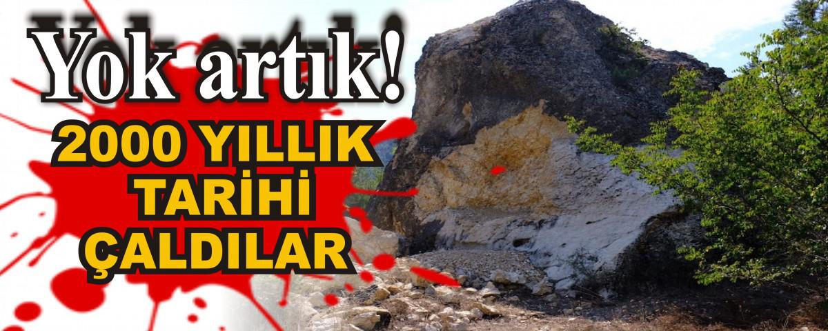 İddiaya göre, Bolu’nun Göynük ilçesi Soğukçam Köyü’nde bulunan Frig Kaya Anıtı çalındı. Yaklaşık 9 metre yüksekliğinde, 9 satırdan oluşan ve sol üst köşesinde üçgen bir niş yer alan yazıt tarihçiler için büyük önem arz ediyordu. Anadolu’da devlet kuran Friglerin Bolu’da yaşadığının en büyük kanıtı olan anıt defineciler tarafından parça parça çalındı. 2017’den bu yana dinamit kullanarak parça parça çalınan anıtın son parçasının da geçtiğimiz günlerde kimliği belirsiz kişiler tarafından parçalanarak götürüldüğü iddia ediliyor. Bilinen en eski Frig yazıtı olan anıtın şu an bulunduğu kayada ise büyük hasar var. 2 bin yıllık tarihin bulunduğu anıtın bulunduğu kayada, dinamit patlamaları ve kaçak kazılar yüzünden krater oluştu.