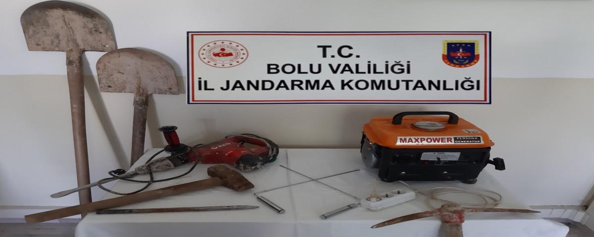 Edinilen bilgiye göre, İl Jandarma Komutanlığı ekipleri Bolu’nun merkez ilçesi sınırları içinde kaçak kazı yapıldığı yönünde ihbar aldı. Gelen ihbarı değerlendiren İl Jandarma Komutanlığı ekipleri yaptıkları operasyonda, kaçak kazı yapan 6 şahsı suçüstü yakaladı. Kazı bölgesinde yapılan aramalarda 1 adet Osmanlı sikkesi, 1 adet jeneratör, 1 adet hilti, 2 adet define arama aparatı ve kazı malzemesi ele geçirildi.