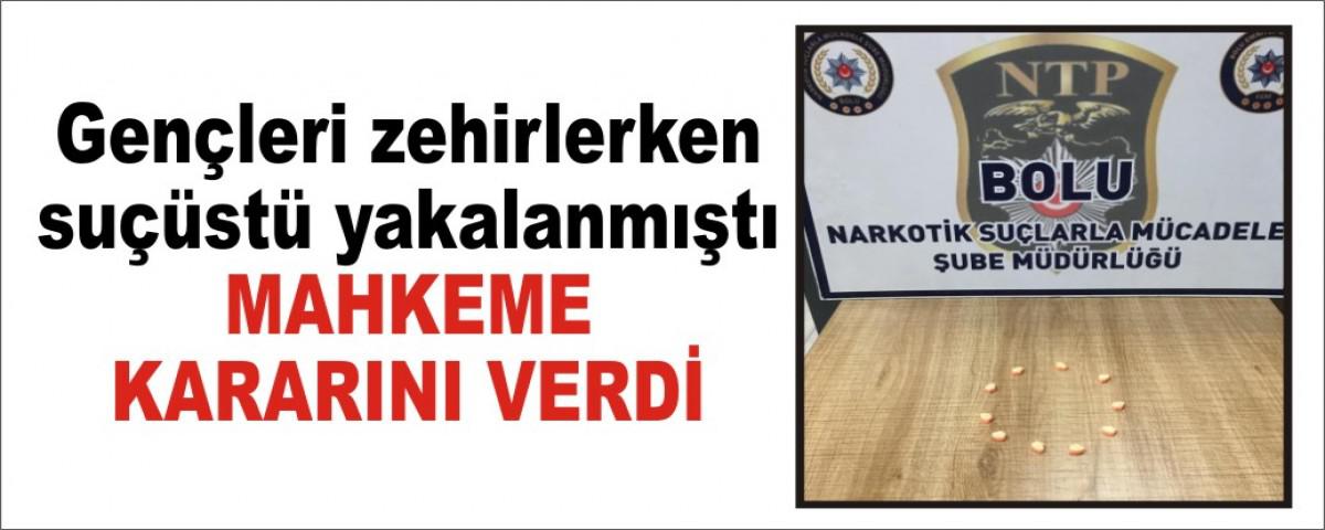 Bolu’da, polis ekipleri tarafından yapılan uyuşturucu operasyonunda, ecstasy hap ile yakalanan Y.K., çıkarıldığı mahkeme tarafından tutuklandı.