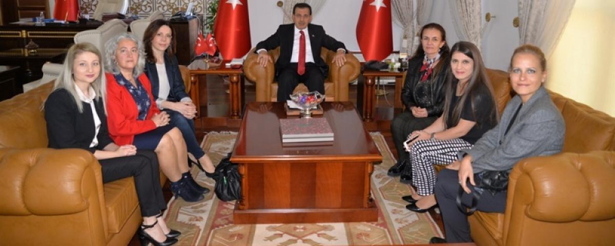 Vali Ahmet Ümit, TOBB Bolu İl Kadın Girişimciler Kurulu Başkanı Emine Yüce ile Kurul Başkan Yardımcıları Ayşe Aksoy, Neşe Alagöz ve Özlem Gökdemir’i, Kurul üyeleri Yasemin Karaağaç ve Şükran Namdar’ı makamında kabul etti.