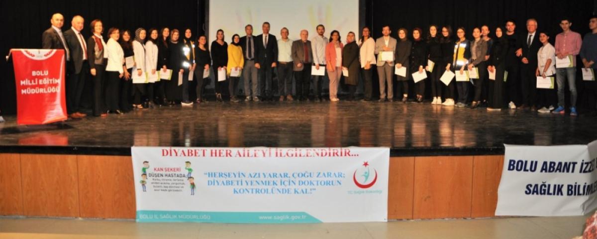 Diyabet konusunda farkındalık oluşturmak için yapılan programa Milli Eğitim Müdürü Yasin Tepe, Bolu İl Sağlık Müdür Vekili Süleyman Özsarı, okul yöneticileri ve rehber öğretmenler katıldı. Hemşirelik Bölümü öğrencilerinin hazırladıkları drama etkinliğinin sergilemesiyle başlayan program, İzzet Baysal Halk Eğitim Merkezi ve Akşam Sanat Okulu müdürü Kenan Öztürk'ün diyabet hastası olan çocuğuyla yaşadıklarını paylaşmasıyla devam etti. Dahiliye uzmanı Dr. Ceyhun Şahin tarafından diyabet hakkında sunum verilmesinin ardından Milli Eğitim Müdürü Yasin Tepe etkinliği düzenleyenlere teşekkür belgesi verdi ve kitap okumanın önemine vurgu yapmak amacıyla salonda yanında kitap bulunanlara sahnede teşekkür ederek, kitap hediye etti. Elif Erdoğan