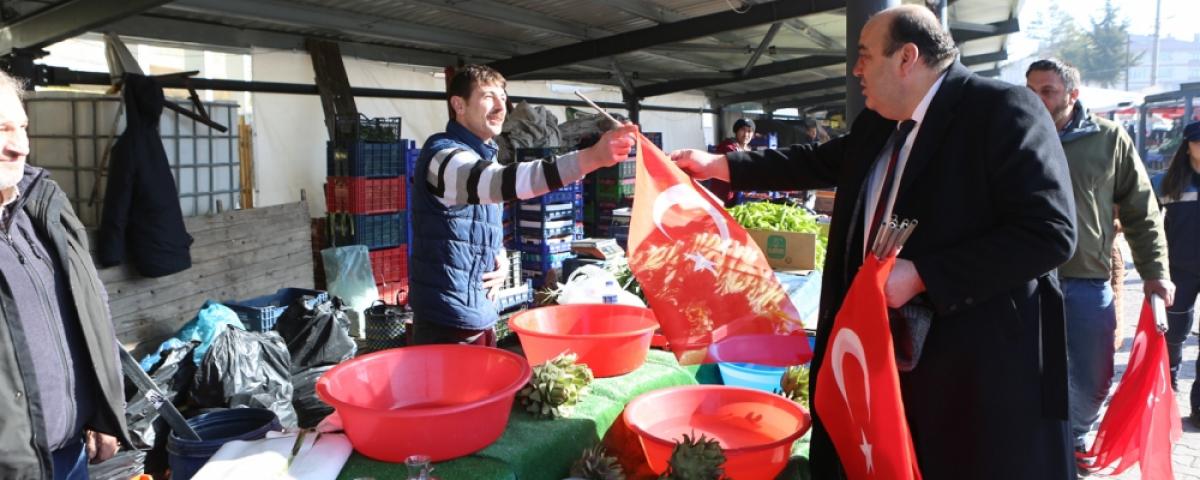 Geçtiğimiz hafta İdlib’de 34 askerimizin şehit olması üzerine ülke olarak birlik ve beraberliğe en çok ihtiyaç duyduğumuz şu günlerde Bolu Belediyesi tarafından gerçekleştirilen Türk Bayrağı dağıtımı vatandaşlardan ve esnaflardan tam not aldı. Bolu Belediye Başkan Yardımcısı İsa Özcan tarafından dağıtılan Türk Bayraklarını işyerlerine asan esnaflar pazaryerinde muhteşem bir görüntü oluşturdu.