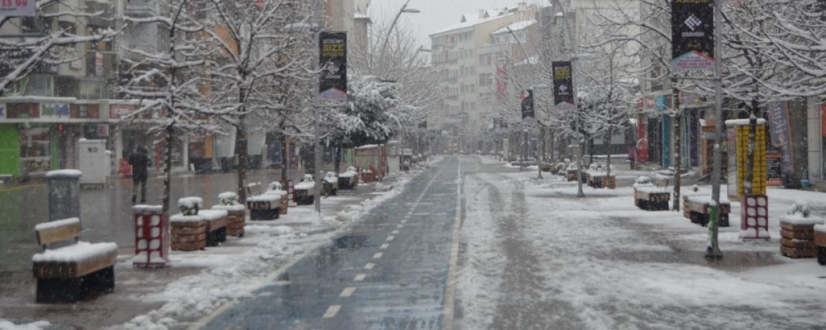 Meteoroloji yetkililerinin hafta sonu kar yağışı uyarısı yaptığı Bolu'da, kar yağışı başladı. Gece saatlerinde başlayan ve aralıklarla yağan kar, sabah saatlerinden itibaren ise etkisini arttırarak devam ediyor. Korona virüs tedbirleri nedeni ile boş olan sokaklara yağan kar yağışı nedeni ile kısa sürede kent merkezi beyaz örtü ile kaplandı.