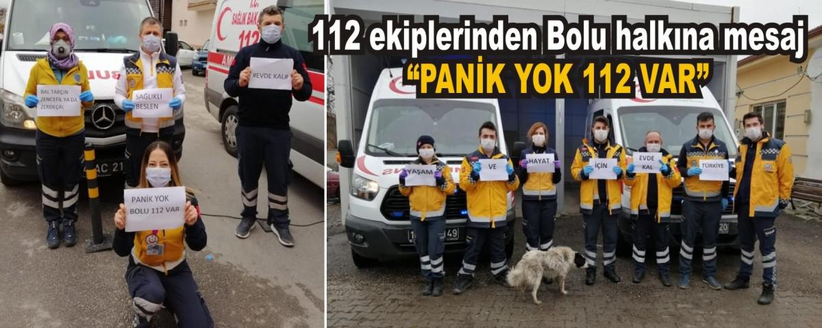 112 ekipleri tarafından da Bolu halkına çeşitli mesajlar verildi. Ellerine “Sağlıklı beslen”, “Evde kal Bolu” ve “Panik yok 112 var” yazılı kağıtlarla fotoğraf çektiren sağlık çalışanları, Bolu halkına salgın boyunca tedbirlere uyması konusunda mesaj verdi.