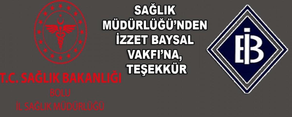 İzzet Baysal Eğitim Araştırma Hastanesi ve İzzet Baysal Devlet Hastanesinde Covid-19'un tedavi aşamalarında kullanılmak üzere 3 adet Yoğun Bakım mekanik ventilatörü, 10 adet yoğun bakım monitörü ve 4 adet yüksek akımlı oksijen cihazı olmak üzere toplamda 660.000 TL tutarında cihaz bağışlayan İzzet Baysal Vakfı'na Bolu İl sağlık Müdürlüğü sosyal medya hesabından yayınladığı mesajla teşekkür etti.