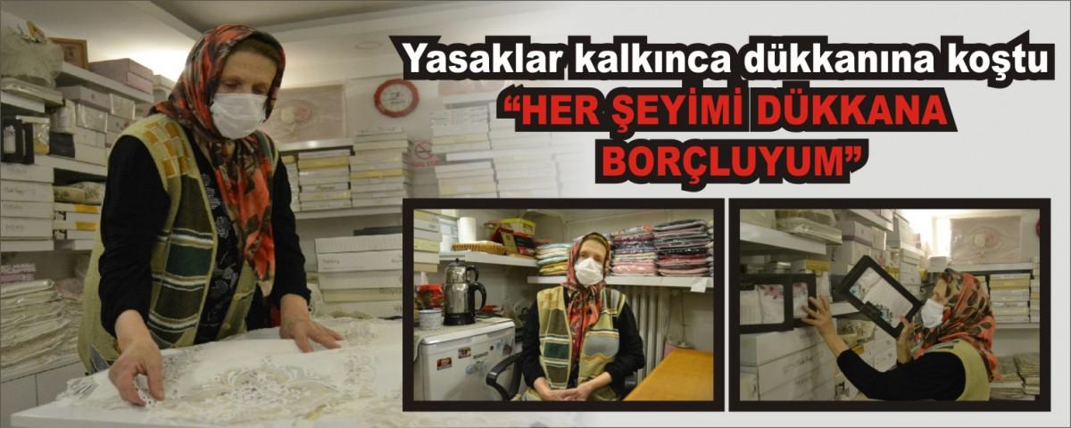 Bolu'da, korona virüs salgını nedeni ile dükkanını kapatmak zorunda kalan 45 yıllık esnaf Kadriye Özgören (78), sabah erken saatlerde gelerek çok sevdiği tekstil ürünleri sattığı dükkanına kavuştu. Hislerini anlatan Özgören, “Ben bu işi 45 senedir yapıyorum. Bütün her şeyimi dükkana borçluyum. Sağlığımı, her şeyimi” dedi.
