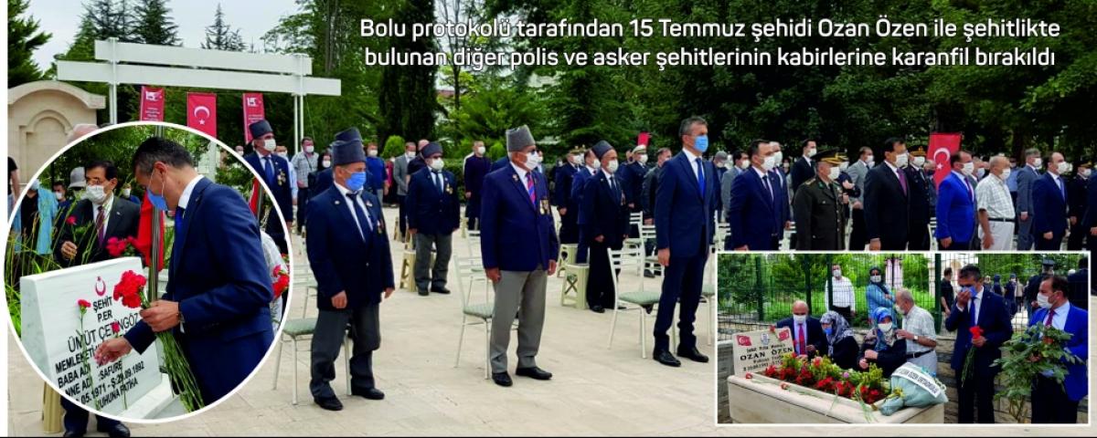 Saygı duruşu ve İstiklal Marşı'nın okunması ileŞehitler Mezarlığı'nda başlayan tören Bolu Müftülüğü bünyesinde görevli imamların Kur'an-ı Kerim tilavetinin ardından Bolu Müftüsü Orhan Genç tarafından dua etmesi ile devam etti. Duanın ardından protokol üyeleri ve vatandaşlar, 15 Temmuz şehidi polis memuru Ozan Özen ile şehitlikte bulunan diğer polis ve asker şehitlerinin kabirlerine karanfil bırakarak dua etti.