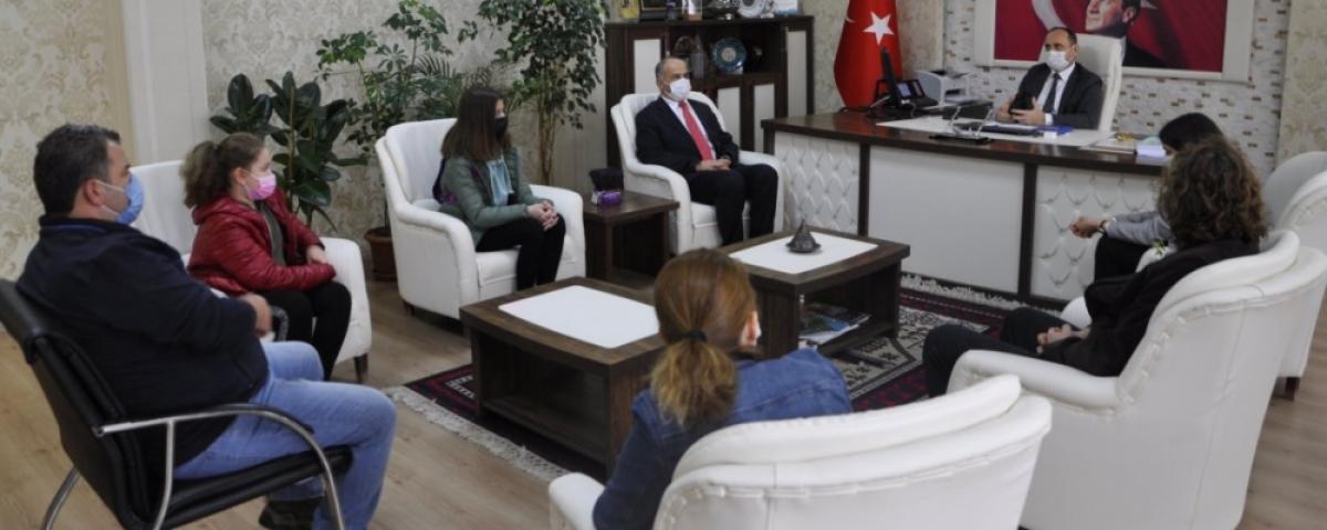 TÜBİTAK 2020 Ortaokul Öğrencileri Araştırma Projeleri Yarışması Türkiye Finalleri'nde "Robotik Kodlama" alanında "Kilitle Devreye Giren WC Sistemi ve Kaynakların Tasarrufuna Olası Etkisi" adlı projeleriyle Türkiye Birincisi olan Göynük Ortaokulu öğrencileri Ceren Ulutaş, Beliz Zeynep Oktay, aileleri ve danışman öğretmen Sezai Güvenman, Göynük İlçe Milli Eğitim Müdürü Bahattin Yüksel ile birlikte İl Milli Eğitim Müdürü Cemil Sarıcı'ya bir ziyaret gerçekleştirdiler. Ziyaret esnasında projenin çıkış fikri, oluşturma süreçleri ve karşılaştıkları zorlukları nasıl bertaraf ettikleri ile ilgili İl Müdürü Sarıcı'yı bilgilendiren öğrencilerimiz, sonuçtan oldukça memnun olduklarını belirterek bu başarıyı ilimize armağan ettiklerini belirttiler.