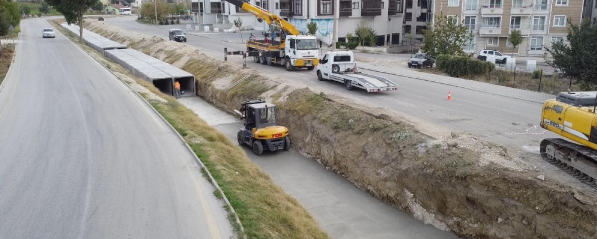 Bolu Belediye Başkanı Tanju Özcan'ın seçim vaatlerinden olan, Sulama Kanalı Kapatma Projesi'nin ilk etap çalışmaları tüm hızıyla devam ediyor. Kanalın 2,9 kilometrelik kısmı Fen İşleri Müdürlüğü ekipleri tarafından belediyenin kendi üretimi olan büzler yerleştirdikten sonra üzeri toprakla kapatıldı. Kalan 5 kilometrelik kısmı da bu yıl tamamlamayı planlayan ekipler, toplam uzunluğu 8 kilometre olan kanal yolunu, yürüyüş ve bisiklet yollarının olduğu yeşil alan olarak projelendirecek. Bu kapsamda Fen İşleri Müdürlüğü ekiplerince Sağlık Mahallesi kapalı semt pazarı yakınlarındaki bölgenin genişletilmesi amacıyla 100 metre uzunluğunda büyük bir duvar inşa edildi.