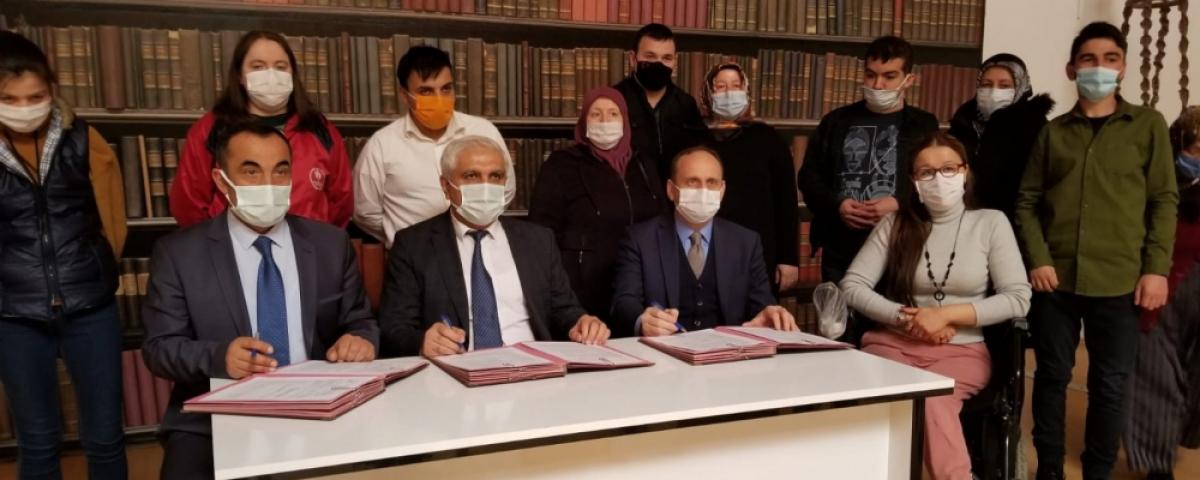 Aile, Çalışma ve Sosyal Hizmetler İl Müdürlüğü'ne bağlı Bolu Gündüz Bakım Rehabilitasyon ve Aile Danışma Merkezi Müdürlüğü'ne devam eden 18 yaş üstü engelli bireylerin bir meslek öğrenmelerine yönelik açılacak Geleneksel El Nakışları ve Elde Türk İşlemeleri Kursları için İl Milli Eğitim Müdürü Cemil Sarıcı, Aile, Çalışma ve Sosyal Hizmetler İl Müdürü Bekir Koçyiğit ve İŞKUR İl Müdürü İsmail Yalçın'ın katılımı ile protokol imzalandı. Bolu Gündüz Bakım Rehabilitasyon ve Aile Danışma Merkezi Müdürlüğü'nde bulunan eğitim sınıflarında gerçekleştirilecek Mesleki Eğitim Kursları Tip İşbirliği Protokolü gereğince İzzet Baysal Halk Eğitimi Merkezi ve Akşam Sanat Okulu tarafından usta eğiticiler görevlendirilecek, İŞKUR ise kursa katılan engelli bireylere kurs ücretini ödeyecektir.