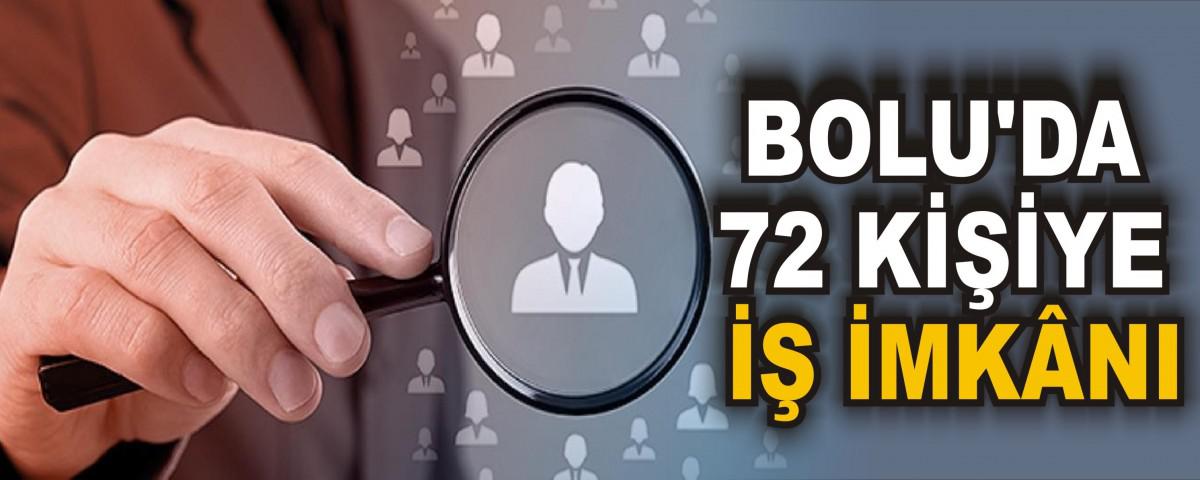 Türkiye İş Kurumu aracılığıyla yayımlanan ilanlara göre Bolu'dan 72 vatandaşa iş imkânı sunulacak. Yayımlanan ilana göre en çok personel ihtiyacı olan bölüm 12 kişi ile beden işçisi olurken 5 şoför yük taşıma elemanı oldu.