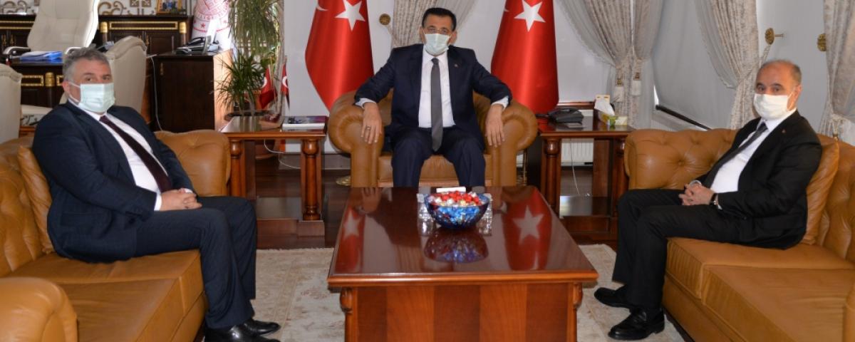 Emniyet Genel Müdürlüğü Hukuk Birimleri Hizmet İçi Eğitim ve Değerlendirme Semineri dolayısıyla Bolu'ya gelen Emniyet Genel Müdürü Vali Mehmet Aktaş, Bolu Valisi Ahmet Ümit'i makamında ziyaret etti.