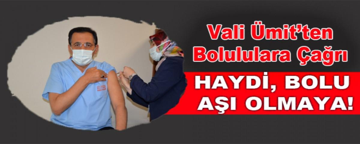 Bolu Valisi Ahmet Ümit, Bolu İzzet Baysal Devlet Hastanesi Köroğlu Ünitesi'nde koronavirüsle mücadele kapsamında 3'üncü doz aşısını yaptırdı. Aşı olmayanlara “Aşı Olun” çağrısında bulunan Vali Ümit, ”Boluya aşıda % 100'ü yakalamak yakışır" dedi.