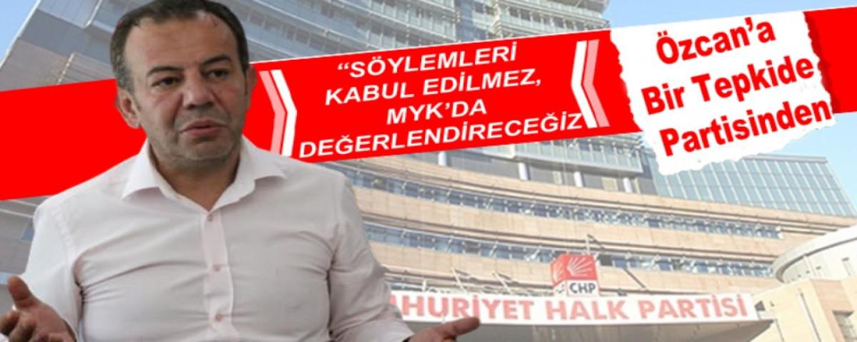 Bolu Belediye Başkanı Tanju Özcan'ın Youtube'de Armağan Çağlayan'ın programında bir kadınla ilgili söyledikleri ifadelere bir tepki de CHP'den geldi. Konu ile ilgili açıklamada bulunan CHP Sözcüsü Faik Öztrak, Bolu Belediye Başkanı Tanju Özcan'ın söylemlerinin kabul edilmez olduğunu belirterek Başkan Özcan'ın durumunu MYK toplantısında ele alacaklarını belirtti.