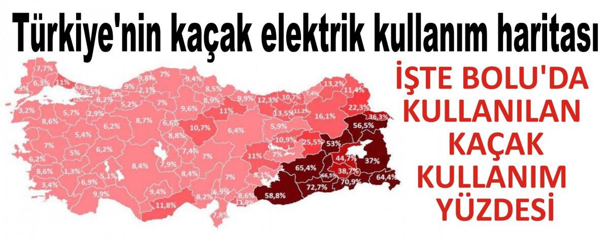 Yayınlanan güncel kaçak elektrik kullanım haritasına bakıldığında Bolu kaçak elektrik kullanımında düşük iller arasında yer aldı. Haritaya bakıldığında Bolu 5,2'lik yüzdeyle düşük iller arasında yer aldı.