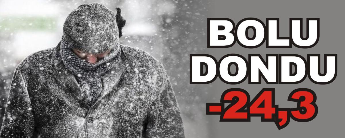 Hafta sonu etkili olan kar yağışının ardından dondurucu soğuğun etkisi altında kalan Bolu'da termometreler -24,3'ü gösterdi. Meteoroloji Genel Müdürlüğünden edinilen bilgiye göre Bolu'daki sıcaklıklar şu şekilde;