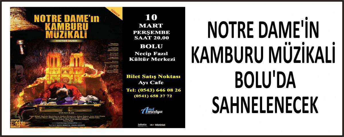 KGS (Kumbara Görsel Sanatlar) Tiyatrosunun, Notre Dame'in Kamburu Müzikali, Anıl Medya- Light Project organizasyonuyla, 10 Mart Perşembe akşamı saat: 20.00'de Bolu Belediyesi Necip Fazıl Kültür Merkezi'nde sahnelenecek.