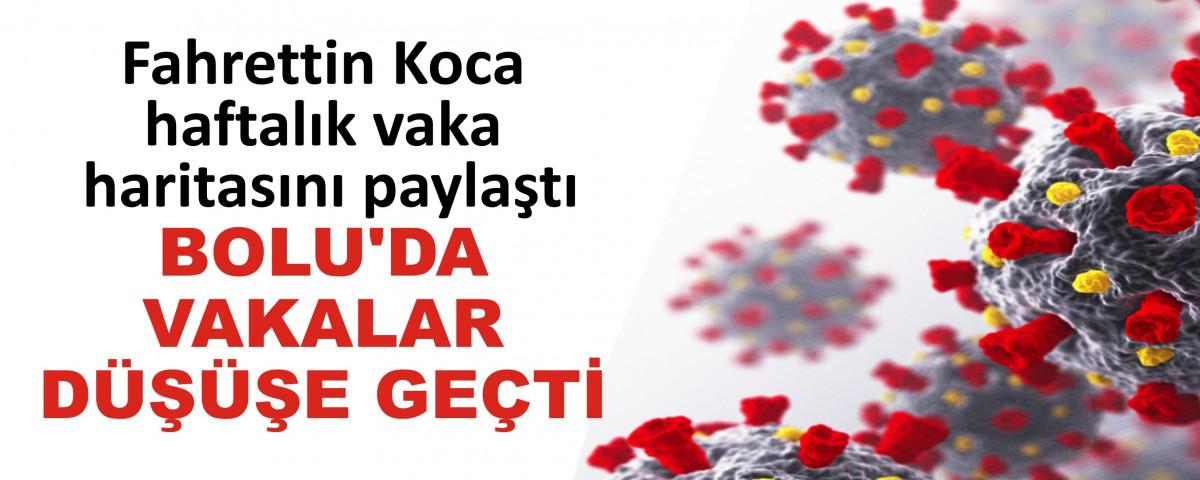 Bakan Koca'nın paylaştığı verilere göre Bolu'da 26 Şubat-4 Mart tarihleri arasında 706,22 olan vaka sayıları düşüşe devam ederek 5-11 Mart arasında tarihleri arasında 368.42 oldu.