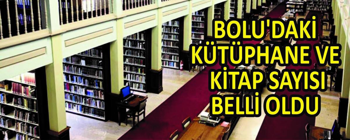 Bolu il genelindeki toplam 9 halk kütüphanesinde 207 bin 717 kitap bulunuyor. Halk kütüphanelerindeki kullanıcı sayısı 142 bin 064, kayıtlı üye 29 bin 616, ödünç verilen materyal sayısı ise 61 bin 748 olarak belirlendi.