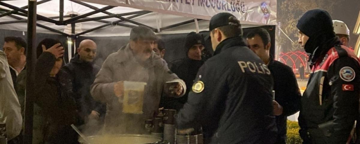 Polisler için Kent Meydanı'nda kurulan stantlarda Bolu Dağı Polis Evi aşçıları tarafından hazırlanan çorba dağıtımı yapıldı. Görev yapan polisleri ziyaret eden Emniyet Müdürü Aksoy ise, standın başına geçerek görevli polislere elleriyle çorba ikram etti.
