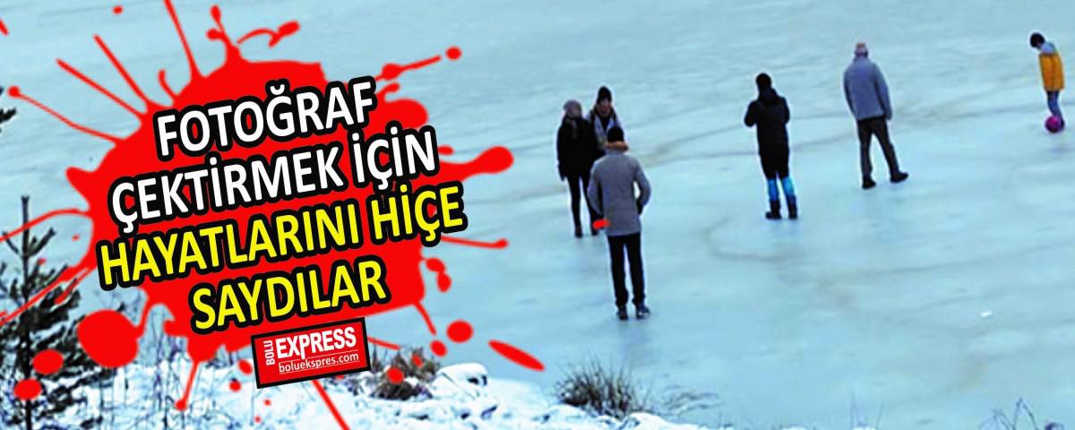 Kartpostallık manzarayı ölümsüzleştirmek için bol bol fotoğraf çektiren tatilcilerin bir kısmı donmuş gölün yüzeyine çıkarak hayatlarını tehlikeye attı.
