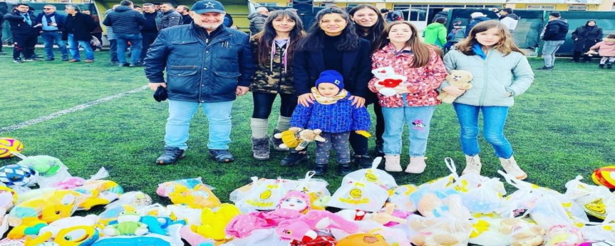 Ellerinde depremzede çocuklar için bir çok malzeme ile gelen aileler, taraftarlar ve çocuklar bu anlamlı organizasyona katılarak spor severlerin alkışlarını aldılar.