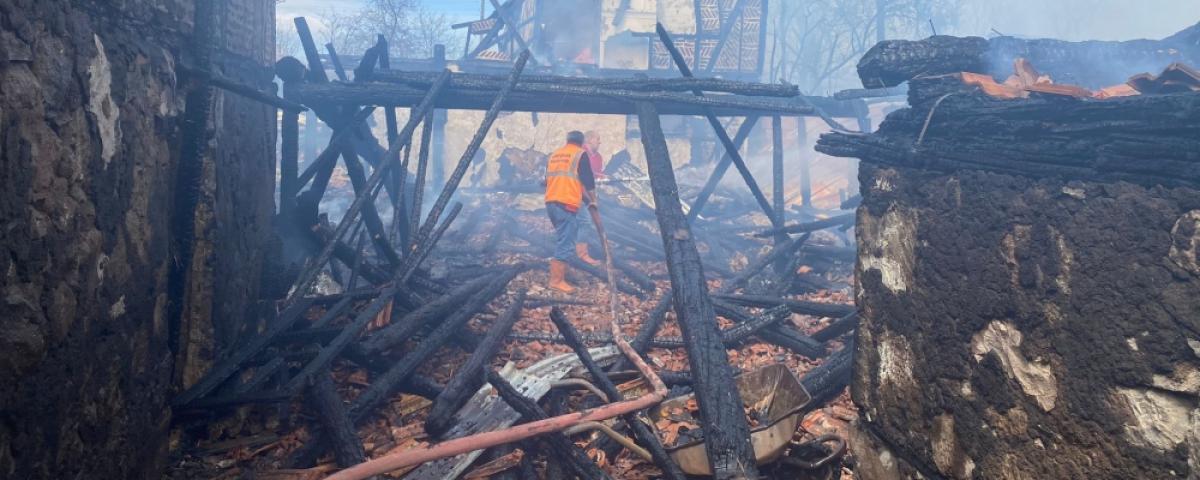 Ekiplerce söndürülen yangında, ahşap ev ve odunluk kullanılamaz hale geldi.