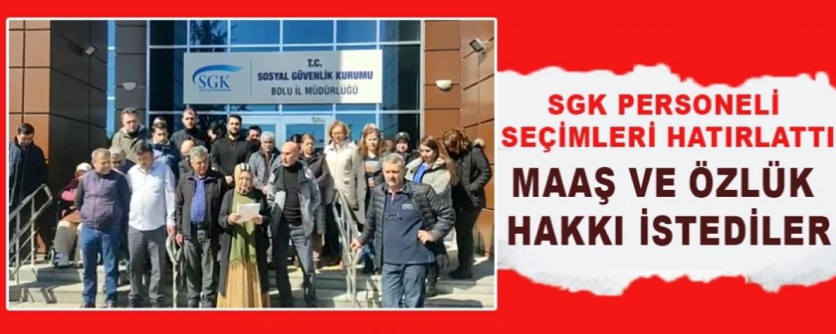 Bolu'da, özellikle EYT'nin karara bağlanmasıyla birlikte yoğun mesai harcayan Sosyal Güvenlik Kurumu çalışanları özlük haklarının ve maaşlarının iyileştirilmesi için biraraya gelerek basın açıklaması yaptı.