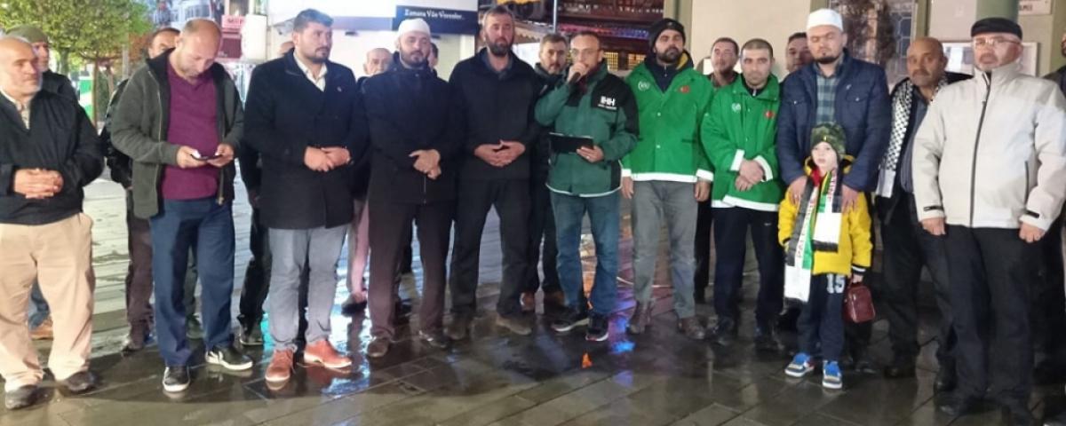 Genç-İHH adına açıklamayı yapan İHH Bolu Arama Kurtarma Başkanı Mehmet Akyüz; “İşgalci İsrail, geçtiğimiz günlerde Gazze'ye füzelerle saldırı düzenledi. Bu saldırıların sonucunda çoğunluğu çocuklar ve kadınlar olmak üzere 13 Filistinli şehit oldu. Hayatını kaybeden Filistinliler, ablukadan dolayı hayatları boyunca bu işgale maruz kaldılar. İsrail'in Filistin üzerinde hiç bir hakkı yoktur. Sivil insanları çocukları dünyanın gözü önünde öldüren bir katil devleti meşru görürseniz, dünyada adaleti öldürürsünüz. Katilin, soykırımcının, çocuk katilinin devleti olamaz. Katil İsrail devletinin saldırıları durması için sonuna kadar mücadelemize devam edeceğiz. Kudüs ve Gazze Müslümanlar olarak kırmızı çizgilerimizdir. Dünyadaki tüm insan hakları ve insani yardım çalışması yapan kurumlarına sesleniyoruz: Ey insani yardım ve insan hakları kurumları; “En iyi insani yardım, zalimlerin zulmüne engel olmaktır.” şeklinde konuştu.