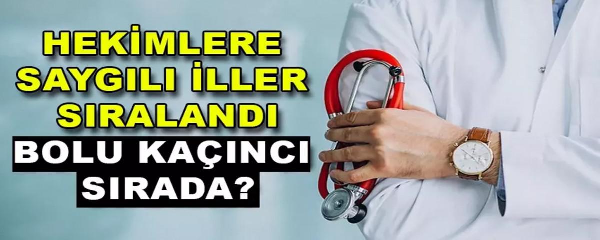Türkiye genelinde yapılan anketle hekimlere en saygılı iller belirlendi. 81 il arasında Bolu 17. Sırayı alırken Tunceli 1, Şanlıurfa ise son sırada yer aldı.