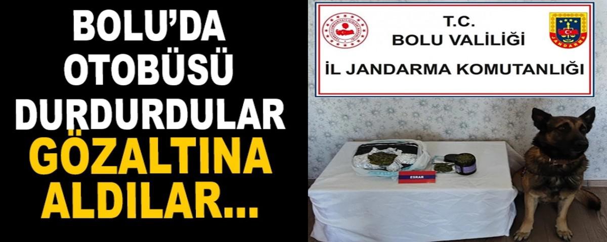 İl Jandarma Komutanlığı ekipleri, otoyolun Yeniçağa kesiminde uygulama yaptı. Durdurulan yolcu otobüsünde yapılan kontrollerde, bir yolcunun üzerinden 565 gram kubar esrar çıktı.
