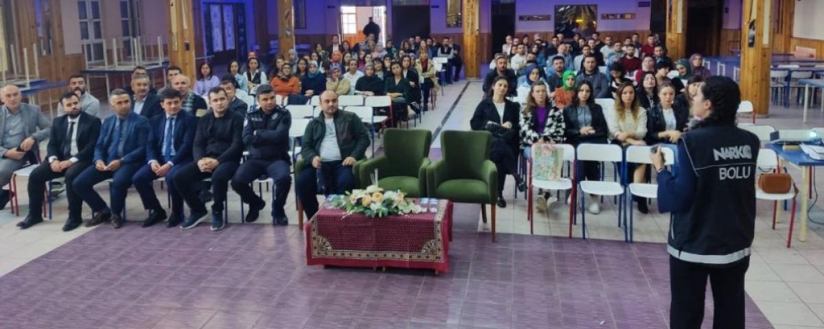 Bolu İl Emniyet Müdürlüğü Narkotik Suçlarla Mücadele Şube ekipleri tarafından Mudurnu Belediyesi Düğün Salonu'nda gerçekleştirilen Narkorehber seminerine ilçedeki kamu kurum ve kuruluş temsilcileriyle personelleri katıldı. Alanında uzman ekiplerce katılımcılara madde kullanımı, kullanıcıların tespitinin nasıl yapılacağı, şüpheli durumların neler olduğu, madde kullanıcılarının sosyal, fiziksel ve ruhsal olarak nasıl etkilendiği, uyuşturucu maddelerin neler olduğu konusunda seminer verildi. Mudurnu'nun Sesi
