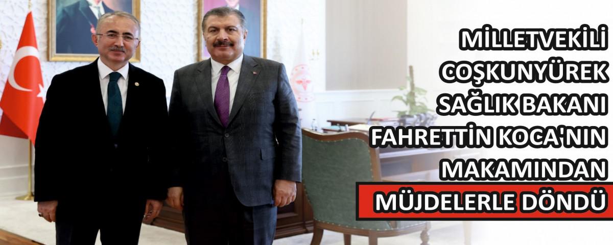 Ziyaret sonrası açıklamalarda bulunan Bolu Milletvekili Yüksel Coşkunyürek; “Sağlık Bakanımız Sn. Fahrettin Koca'yı makamında ziyaret ederek sağlık alanında Bolu'muzda hemşehrilerimizin hizmetine sunmak için yürüttüğümüz ve planladığımız Bolu Abant İzzet Baysal Üniversitesi Eğitim ve Araştırma Hastanesi Ek Hizmet Binası, 400 Yataklı Şehir Hastanesi ve 150 Yataklı Kadın Doğum ve Çocuk Hastalıkları Hastanesi'nin ilimize kazandırılması, yeni yapılan 250 yataklı Fizik Tedavi ve Rehabilitasyon Hastanesi'ne ek ödenek verilmesi, kanser hastalarının teşhis ve takibinde kullanılan PET CT (Pozitron Emisyon Tomografisi, Bilgisayarlı Tomografi) cihazının ilimize kazandırılması, İl ve İlçe Hastanelerimizde görevlendirilmek üzere uzman doktor taleplerimizi Sn. Bakanımıza ilettik.