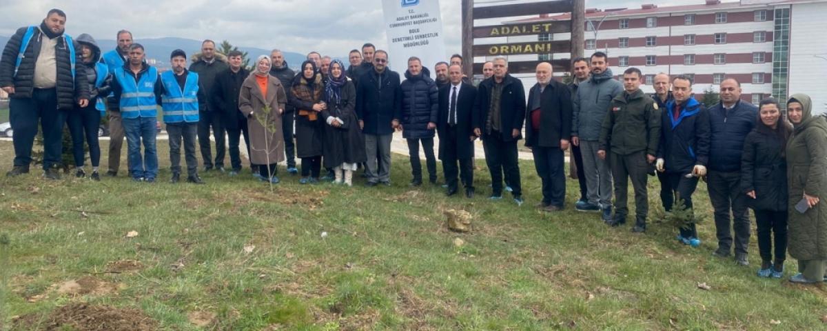 Orman Haftası vesilesiyle 21.03.2024 tarihinde saat:10.30'da Abant İzzet Baysal Üniversitesi girişinde bulunan Adalet Ormanı'na Bolu Denetimli Serbestlik Müdürü Fikret Bütüktopçu, Orman Bölge Müdürlüğünden Şube Müdürü Dr. Metin Serin, AİBÜ Sağlık Bilimleri Fakülte Sekreteri İbrahim Güler, 24 Müdürlük Personeli, Bolu Orman İşletme Müdürlüğü personeli ve 12 Denetimli Serbestlik Yükümlüsünün katılımı ile 80 adet fidan dikimi yapıldı.