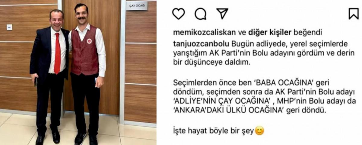 Bolu Belediye Başkanı Tanju Özcan, Bolu Adliyesi'nde fotoğraf çektirdiği çaycı üzerinden Muhammed Emin Demirkol'a göndermede bulundu.