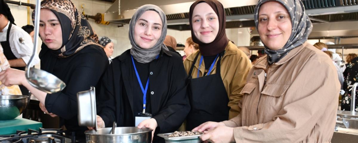 Sunumun ardından uygulama mutfağına geçen anneler, Doç. Dr. Osman Çavuş'la birlikte, daha sağlıklı, lezzetli ve yaratıcı yemek uygulamaları yaptı. Anneler; semiz otu, kırmızı pancar, kereviz, anavatanı Batı Karadeniz olan siyez bulguru ve çeşitli tahıllar kullanarak, yaratıcılıklarını konuşturdu ve sağlıklı lezzetler hazırladı. Annelere, Gastronomi ve Mutfak Sanatları Bölümü öğrencileri yardımcı oldu. 3'üncü gün etkinlikleri, el birliğiyle hazırlanan lezzetli yemeklerin hep birlikte yenilmesinin ardından sona erdi. Haber Merkezi