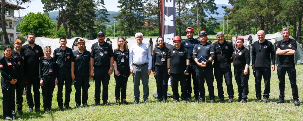 Deprem, sel, yangın gibi felaketlerin hayatın gerçeği olduğunu belirten Valimiz Sayın Erkan Kılıç, “Tüm doğal afetlere karşı her zaman hazırlıklı olmalıyız. Doğal felaketlere uğrayan vatandaşlarımıza yardım eli uzatmak ve vatandaşlarımızın hayatını kurtarmak çok önemli bir vazifedir. Valilik olarak hem Bakanlığımızla hem de kurumlarımızla bağlantılı olarak gerekli çalışmaları yaptık, yapmaya da devam edeceğiz. Bolu'nun coğrafi konumu itibarıyla ilimizde arama kurtarma ekiplerinin artırılması ve bu ekiplerin AFAD ile akredite edilmesi büyük önem arz ediyor. Arama kurtarma ekiplerimize özverili çalışmalarından dolayı teşekkür ediyor, deprem başta olmak üzere tüm doğal afetlerde hayatını kaybeden vatandaşlarımıza Allah'tan rahmet, yakınlarına sabırlar diliyorum. Allah vatandaşlarımızı tüm felaketlerden korusun.” dedi.