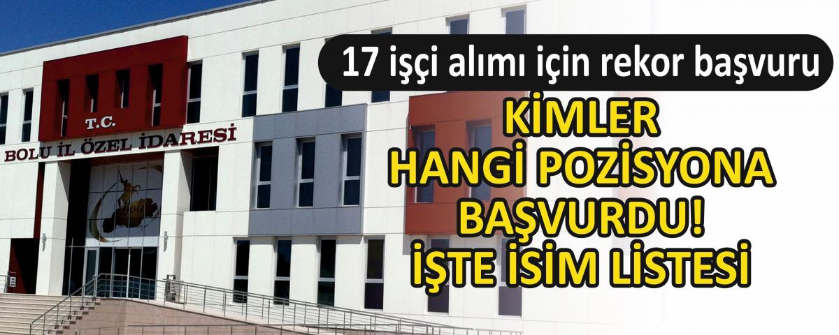 Bolu Özel İdaresi tarafından yapılan duyuruda 7 pozisyonda 17 işçi personel alımı için başvuru tamamlandığı belirtildi. Başvuruların ardından yapılan belge kontrolleri sonucu, başvuru kabul edilen adayların listesi yayımlandı.Belge kontrolleri, bu amaçla dört kişilik bir komisyon tarafından gerçekleştirilmiş olup, ilan edilen şartlara uymayan, eksik ya da yanlış belge ile başvuru yapan adaylar değerlendirme dışı bırakıldı. Başvuru formlarında pozisyonların işaretlenmesi, birden fazla pozisyonun işaretlenmesi veya imza bulunmaması gibi eksiklikler nedeniyle bazı başvurular geçersiz sayıldı. Başvurusu kabul edilmeyen adaylar, itirazlarını 4 Eylül 2024 Çarşamba günü mesai bitimine kadar Bolu İl Özel İdaresi İnsan Kaynakları ve Eğitim Müdürlüğüne yapabilecekler.