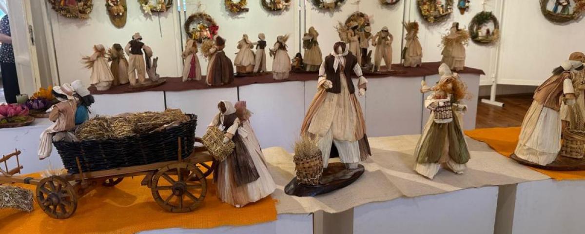 Bunun yanı sıra, 10 adet ahşap üzerine mısır kabuğu ve doğal ürünlerle çalışılmış panolar, 30 adet mısır kabuğundan yapılmış ve kıyafetleri giydirilmiş maket bebekler, 20 adet buğday hasadı yapan bebek modelleri, 18 adet sarmaşık dalları ile hazırlanmış 3 boyutlu enfes kapı süsleri sergide yerlerini aldı.