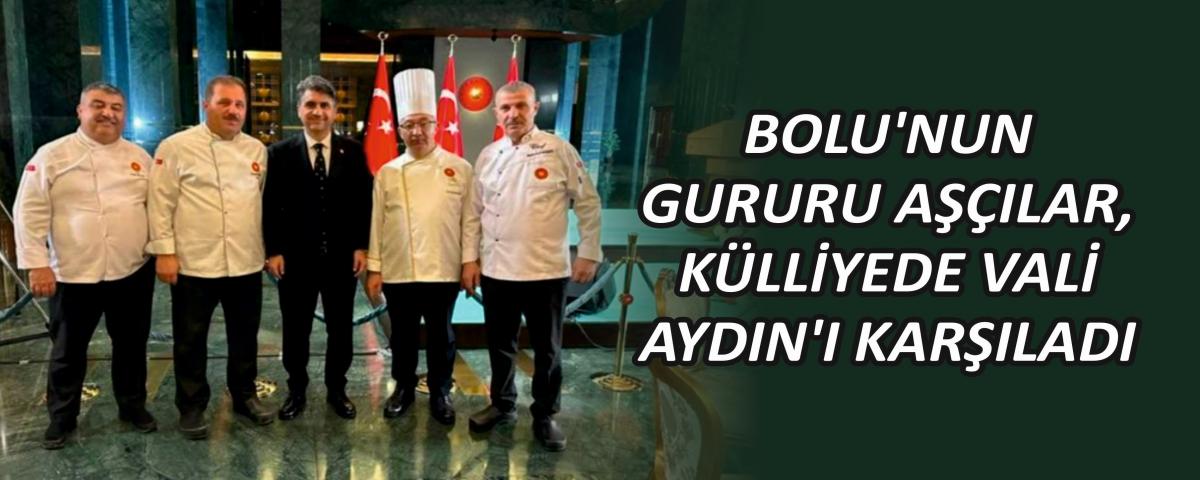 Bolu Valisi Abdulaziz Aydın, Cumhurbaşkanlığı Külliyesini ziyaret etti. Ziyaret sırasında Cumhurbaşkanlığı mutfağında görev yapan Bolulu aşçılar Önder Karaoğlu, Kanan Altundemir, Güray Beşlioğlu, Cevat Eker ve Mengenli aşçı Güray Beşlioğlu tarafından karşılandı. Aşçılarla sohbet eden Vali Aydın, sohbet sonrası hatıra fotoğrafı çektirdi.