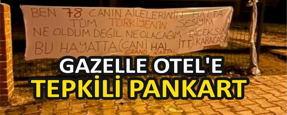Yaşanan olaya tepkiler dinmezken kimliği belirsiz bir vatandaş tarafından Gazelle Otel'in kapısına pankart ve birbirine bağlanmış çarşaf bırakıldı.