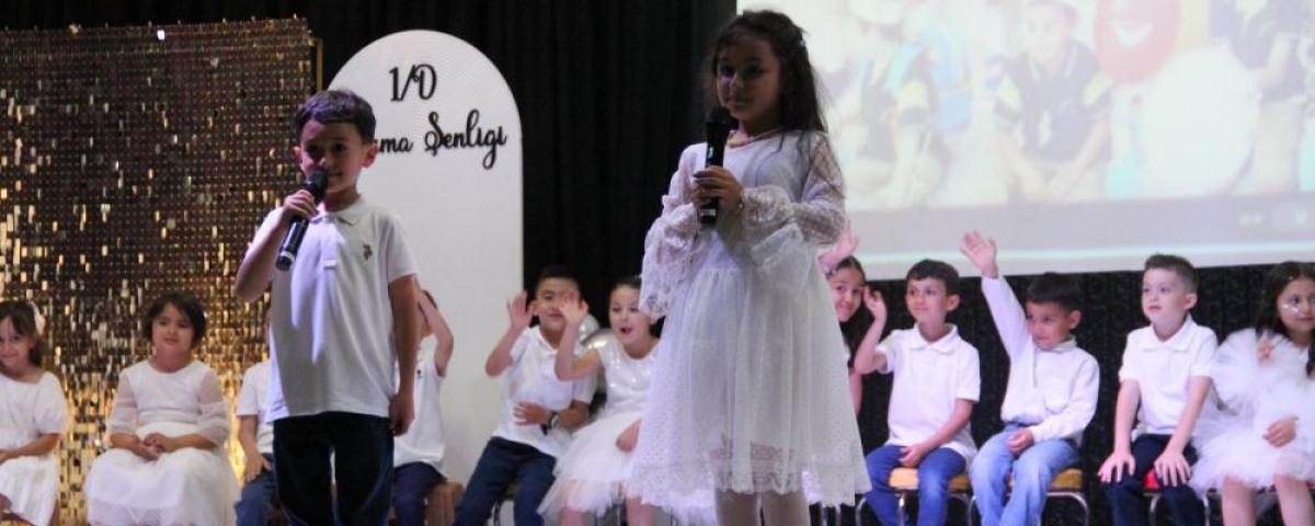 Velilerin yoğun ilgi gösterdiği programda, minik öğrenciler meslek tanıtımı gösterileriyle sahne aldı. Modern dans, zeybek ve tiyatro gösterileriyle renklenen etkinlikte, çocuklar ayrıca alfabedeki harfleri tanıttı. Öğrencilerin sahne performansları izleyicilerden büyük beğeni topladı.