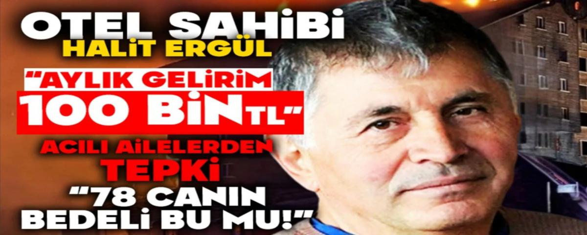 78 kişinin hayatını kaybettiği Grand Kartal Otel yangınına ilişkin davada yargılanan otel sahibi Halit Ergül'ün kimlik tespiti sırasında yaptığı gelir beyanında “Aylık gelirim 100 bin TL” ifadesi mahkemede tepkilere neden oldu. Bolu'da 78 kişinin hayatını kaybettiği Grand Kartal Otel yangınına ilişkin öldürme” ve “olası kastla yaralama” suçlarından yargılanan Ergül'e mahkeme heyeti tarafından mal varlığı ve ekonomik durumuna yöenlik sorular yöneltildi. Ergül gelir beyanında, "Aylık gelirim 100 bin lira civarındadır" ifadelerini kullandı. Sanığın bu beyanı, yangında hayatını kaybeden ailelerin tepkisiyle karşılaştı. Grand Kartal Otel'in sahibi olarak yangındaki ihmallerin baş sorumlularından biri olarak gösterilen Halit Ergül, duruşmada savunmasını yaparken suçlamaları reddetti. Yangında yakınlarını kaybeden aileler, “Otel yangını ihmaller zinciriydi, canlarımız giderken bu kadar kazanç elde edilmesi içimizi acıtıyor” diyerek sert çıktı.