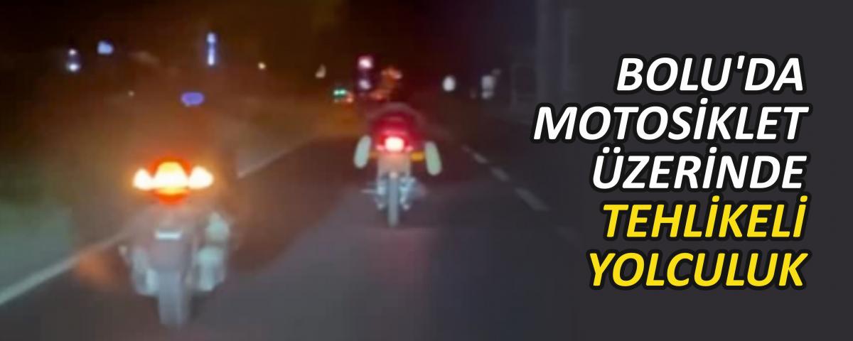 Bolu'da, motosikletli 2 kişinin gece saatlerinde D100 Karayolu'nda tehlikeli yolculukları vatandaşlar tarafından cep telefonu ile görüntülendi. Ankara ve İstanbul arasında en işlek yollardan birisi olan D100 Karayolu'nda motosikletlerinin üzerine yatarak hız yapan gençlerin tehlikeli yolculukları görenleri şaşırttı.