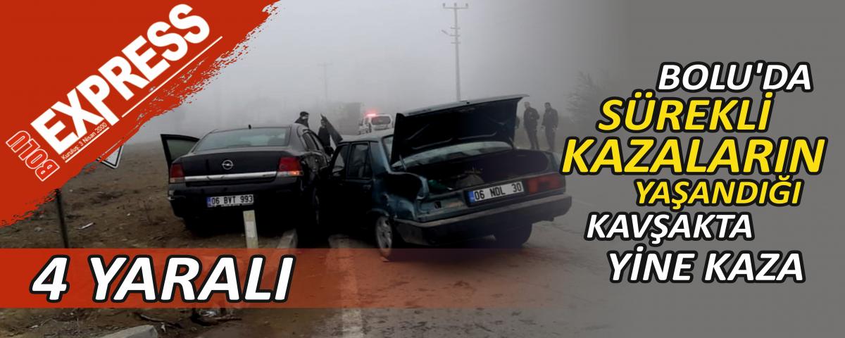 Kaza, Bolu-Mudurnu kara yolunda Mudurnu ilçesinin giriş kısmında bulunan dönel kavşakta meydana geldi. Edinilen bilgiye göre, sisin etkili olduğu bölgede İsmail B. yönetimindeki 06 NDL 30 plakalı Fiat Tofaş marka otomobil ile Osman K. idaresindeki 06 PVT 933 plakalı Opel marka otomobil çarpıştı. Çarpışmanın etkisiyle meydana gelen kazada 1'i bebek 4 kişi yaralandı. Durum 112 Acil Çağrı Merkezi'ne bildirildi. İhbar üzerine bölgeye sağlık ve polis ekipleri sevk edildi. Kazada yaralanan vatandaşlar sağlık ekiplerinin ilk müdahalesinin ardından Mudurnu İlçe Devlet Hastanesi'ne kaldırıldı.