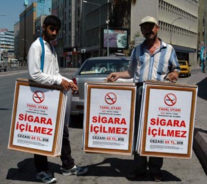 19 Temmuz 2009'da başlayan yasak sonrası kapalı alanlara asılmaya başlayan uyarı levhalarının satışında büyük artış oldu. Bolu?da daha önce bayrak ve poster satanlar şimdi sokakta üzerinde, "Yasal Uyarı, 4207 Sayılı Yasa gereğince bu alanda sigara içilmez. Cezası 69 TL.'dir." yazılı levhaları pazarlıyor. 7 çocuk babası 49 yaşındaki İrfan Kartuz, günde ortalama 15 uyarı levhası sattığını söyledi. 3-5 TL'den müşteri bulan levhalara gösterilen ilgiden memnun kalan Kartuz, "İyi sigara yasağı başladı. Bizler de şimdilik bu işten ekmek paramızı çıkartıyoruz." dedi. 18 yaşındaki Ali Taşkömür de aynı sigara yasağına sevinenlerden. Daha önce hamallık yaptığını belirten Töşkömür, uygulama sonrası bu levhaları pazarlamaya başladığını kaydetti.