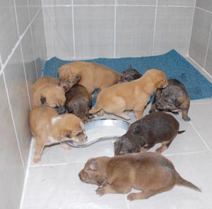 Bolu Belediyesi hayvan barınağında sıcak bir bölüme yerleştirilen yavru köpeklere yiyecek ve içecek veren çalışanlar, hayvanların sağlığının iyi olduğunu belirttiler.