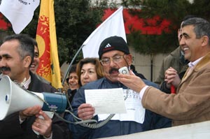 Tekel işçilerinin desteklendiği eylemde Çetin dikkatleri üzerine topladı