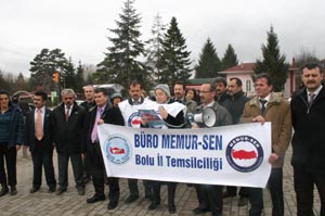 Eylemde Büro Memursan Bolu İl Temsilcisi Sevinç Akkoyunoğlu bir basın açıklaması yaptı.